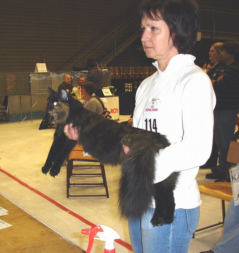 Her er hun 11 måneder gammel og på sin første utstilling i åpen klasse. Eier lena Bylund gjør en strålende jobb med å presentere henne!! Takk for at du tar så godt vare på henne Lena!