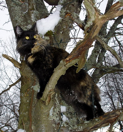 Her er et bilde av henne 11 måneder gammel og ute på tur i bånd langt oppe i et tre. Fin utkikkspost .-))