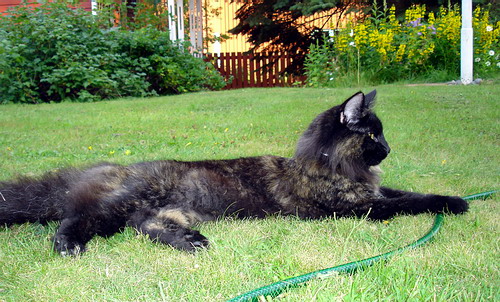 (N) Skaujentas Jordis NFO f 1 år gammel og koser seg ute på plenen.